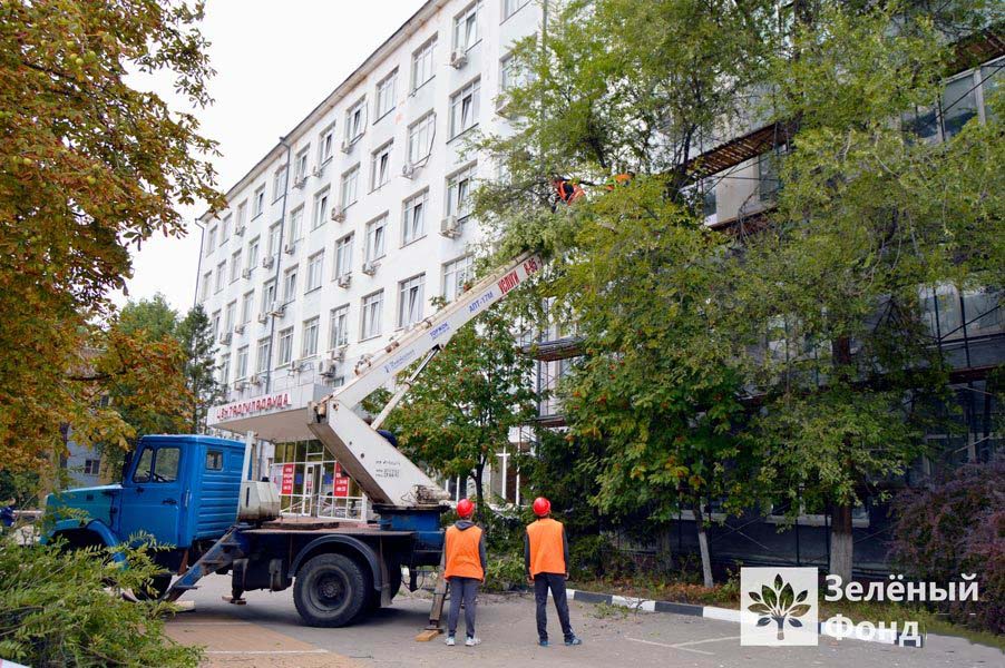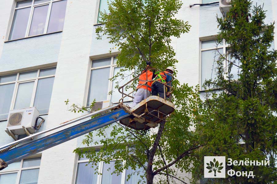 видалення сухих та заважаючих гілок. Усі місця спила обробляються